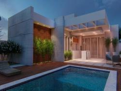 Casa composta por sala em pé direito duplo, com 3 quartos super arejados, sendo uma suíte master com closet. Excelente e moderna Cozinha integrada com a sala, dando conceito de amplitude ao projeto. Área Externa com spacegrill e piscina.